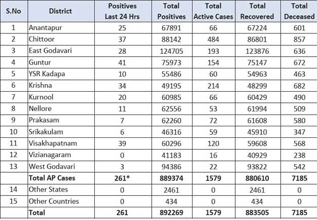 ఎపిలో కొత్తగా 261 కరోనా కేసుల