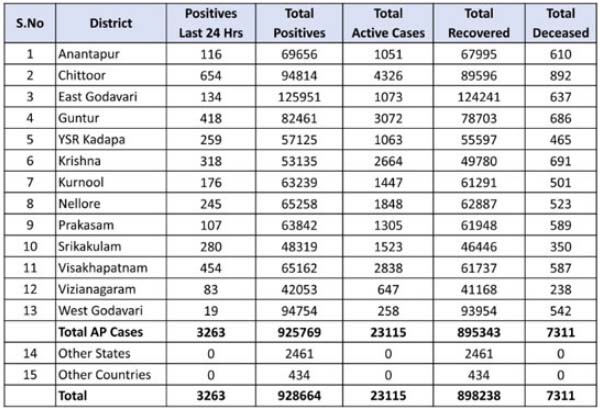 ఎపిలో కొత్తగా 3,263 కరోనా కేసులు