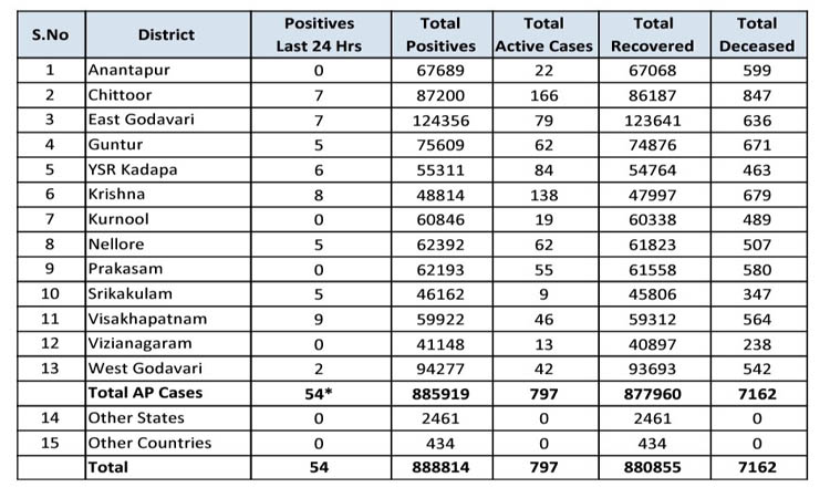 ఎపిలో కొత్తగా 54 కరోనా కేసులు