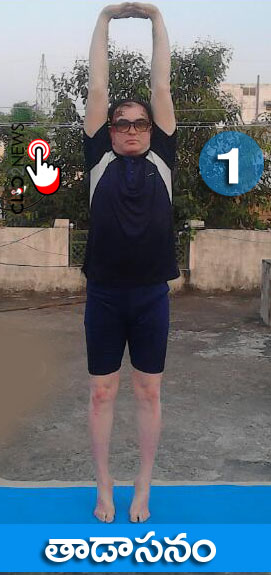 రెండు చేతులు పైకెత్తి తలపైన జోడించి పై శరీర భాగాల్ని, పక్కటెముకలను పైకి లాగుతూ శ్వాస తీసుకోవాలి. ఈ ఆసనం మెడ వీపు కండరాల్ని చైతన్యవంతం చేస్థాయి.