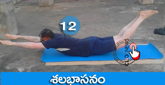గాలి వదులుతూ ఒకటొవ భంగిమకు రిపీట్ చేయాలి. ఇలా 12 గతులు చేయాలి.