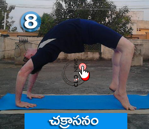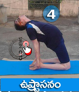 ఈ అసనంలో చేతులను, గాలి పీల్చుతూ పైకెత్తి ఎటువంటి వణుకు బెణుకు లేకుండా వెనక్కు వంగాలి.