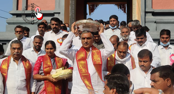 వనదుర్గకు పట్టువస్త్రాలు సమర్పించిన హరీశ్రావు
