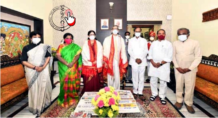 శంషాబాద్ విమానాశ్రయం నుంచి రాజ్భవన్ చేరుకున్న సుప్రీంకోర్టు ప్రధాన న్యాయమూర్తి జస్టిస్ ఎన్వీ రమణకు రాష్ట్ర గవర్నర్ తమిళిసై సౌందరరాజన్, ముఖ్యమంత్రి కేసీఆర్ స్వాగతం పలికారు. అనంతరం ఎన్వీ రమణ పోలీసుల గౌరవ వందనం స్వీకరించారు. మూడు రోజులపాటు రాజ్భవన్ అతిథిగృహంలో బస చేయనున్నారు.