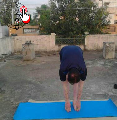 నెమ్మదిగా గాలి బయటకు వదులుతూ రెండు పాదాలు దగ్గరగా ఉంచి చేతులతో నేలకి తాకాలి.