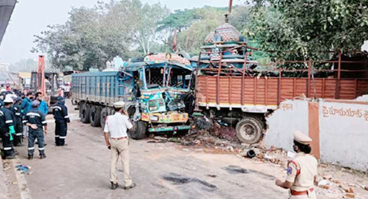 హైదరాబాద్‌: న‌గ‌రంలోని ఉప్పల్లో శుక్ర‌వారం ఓ లారీ హల్‌చల్‌ చేసింది. వేగంగా వచ్చి డీసీఎం వ్యాన్‌ను వెనుక నుండి ఢ కొట్టింది. దీంతో డీసీఎం వ్యాన్‌ అదుపుతప్పి ఓ ద్విచక్రవాహనాన్ని ఢ కొట్టింది. అంతటితో ఆగకుండా హనుమాన్‌ ఆలయం ప్రహరీగోడను ఢకొీట్టి అప్పుడు ఆగింది. ఇంతలో ఈ లారీని వెనుక నుండి మరో మినీ లారీ ఢకొీట్టింది. ఈ ప్రమాదంలో ద్విచక్రవాహనదారుడు అక్కడికక్కడే మృతి చెందాడు. మినీ లారీలో ప్రయాణిస్తున్న నలుగురూ గాయపడ్డారు. ఈ ఘటనతో ఉప్పల్‌-సికింద్రాబాద్‌ ప్రధాన రహదారిపై ట్రాఫిక్‌ భారీగా స్తంభించింది. ఘటనా స్థలికి చేరుకున్న పోలీసులు క్షతగాత్రులను ఆస్పత్రికి తరలించారు. మృతుడు బంజారాహిల్స్‌కు చెందిన రాంచందర్‌(42)గా గుర్తించారు. పోలీసులు కేసు న‌మోదు చేసుకొని ద‌ర్యాప్తు చేస్తున్నారు.