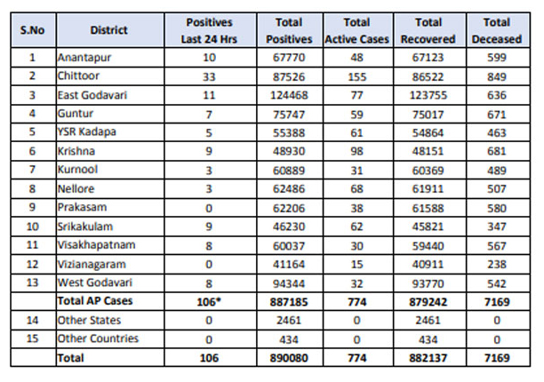 ఆంధ్రప్రదేశ్లో కొత్తగా 106 కరోనా కేసులు