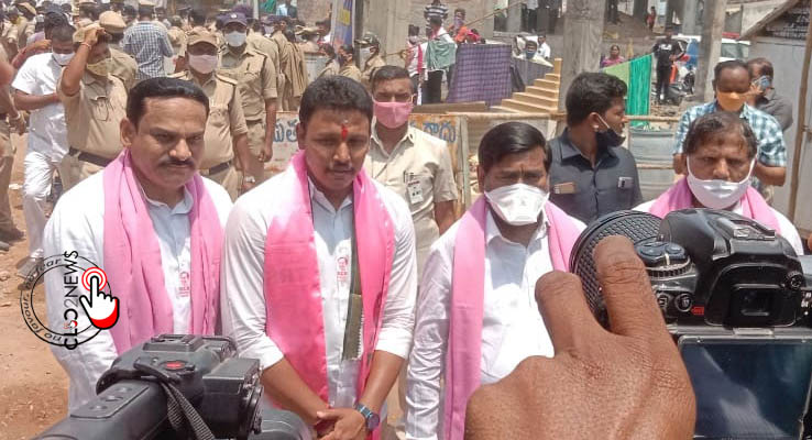 నిడ‌మ‌నూరు: నాగార్జున సాగ‌ర్ ఉప ఎన్నికల్లో భాగంగా టీఆర్ఎస్ అభ్య‌ర్థి నోముల భ‌గ‌త్ కుమార్ ఇవాళ త‌న నామినేష‌న్‌ను నిడ‌మ‌నూరు ఆర్వో కార్యాల‌యంలో దాఖ‌లు చేశారు. ఈ కార్య‌క్ర‌మానికి మంత్రులు మ‌హ‌ముద్ అలీ, జ‌గ‌దీశ్ రెడ్డి, త‌ల‌సాని శ్రీనివాస్ యాద‌వ్‌, ఎమ్మెల్యేలు బొల్లం మ‌ల్ల‌య్య యాద‌వ్, భాస్క‌ర్ రావు, ఎమ్మెల్సీ తేరా చిన్న‌ప రెడ్డితో పాటు ప‌లువురు నాయ‌కులు హాజ‌రయ్యారు.