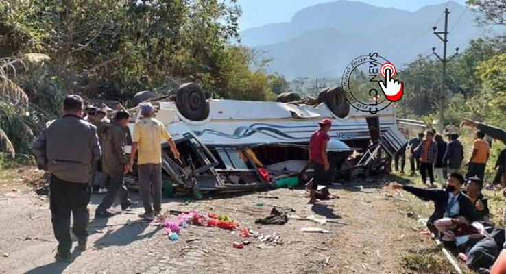 నోనీ జిల్లాకు చెందిన థంబాల్ను స్కూల్ విద్యార్థులు విజ్ఞాన యాత్రకు వెళ్తన్న విద్యార్థుల బస్సు బోల్తాపడి ప్రమాదం సంభవించింది. ఈ ప్రమాదంలో 15 మంది మరణించినట్లు తెలుస్తోంది. విద్యార్థులంతా రెండు బస్సులలో స్టడీ టూర్కు వెళ్లారు. మార్గమధ్యలో అమ్మాయిలు ప్రమాణిస్తున్న బస్సు ప్రమాదానికి గురైంది. ఈ ఘటనపై ఆ రాష్ట్ర సిఎం బీరేన్ సింగ్ దిగ్భ్రాంతి వ్యక్తం చేశారు. ప్రమాద స్థలంలో సహాయక చర్యలు కొనసాగుతున్నట్లు ట్విటర్ వేదికగా తెలిపారు. గాయపడిన వారు త్వరగా కోలుకోవాలని ఆయన ప్రార్థించారు.