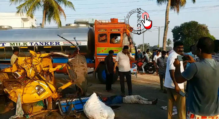 అమరావతి : ఆంధ్రప్రదేశ్‌లోని నెల్లూరు జిల్లా పెళ్లకూరు మండలం తాళ్వాయిపాడు వద్ద జాతీయ ర‌హ‌దారిపై మంగళవారం ఉదయం ఘోర రోడ్డు ప్ర‌మాదం జ‌రిగింది. ఈ ఘ‌ట‌న‌లో ఇద్ద‌రు అక్క‌డిక‌క్క‌డే మ‌ర‌ణించారు. పోలీసుల క‌థ‌నం ప్ర‌కారం.. మోదుగుపాలేనికి చెందిన కూలీలు వెళ్తున్న ఆటోను తొలుత టిప్పర్‌ ఢీకొట్టింది. అది వెళ్లి మరో కారును తాకింది. ఈ ప్రమాదంలో ఆటోలో ప్రయాణిస్తున్న ఇద్ద‌రు మృత్యువాతపడ్డారు. మరో ఇద్దరు తీవ్రంగా గాయపడ్డారు. వెంటనే వారిని హాస్పిటల్‌కు తరలించారు. ప్రమాదం జరిగిన సమయంలో ఎనిమిది మంది వరకు కూలీలు ఉన్నారని, పనుల కోసం వెళ్తున్న క్రమంలో ఈ దుర్ఘటన జరిగినట్లు సమాచారం. సమాచారం అందుకున్న పోలీసులు సంఘటనా స్థలానికి చేరుకొని  పరిశీలించారు. కేసు నమోదు చేసుకొని దర్యాప్తు చేస్తున్నారు. పూర్తి వివరాలు తెలియాల్సి ఉంది.