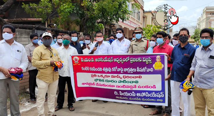 మండపేట (CLiC2NEWS): కరోనా వైరస్ పై ప్రజల్లో అవగాహన కల్పించేందుకు మండపేటలో పీఎంపీ అసోసియేషన్ ర్యాలీ నిర్వహించింది. అసోసియేషన్ నాయకులు కోన సత్యనారాయణ ఆధ్వర్యంలో నిర్వహించిన కార్యక్రమానికి టౌన్ ఎస్సై బి రాజేష్ ముఖ్య అతిథిగా విచ్చేసి ర్యాలీ ప్రారంభించారు. స్థానిక టౌన్ హాల్ నుండి ప్రారంభమైన అవగాహనా ర్యాలీ కలువ పువ్వు సెంటర్ బస్ స్టాండ్ రాజరత్న సెంటర్ వరకూ సాగింది. రహదారి పొడవునా ఇరుప్రక్కలా ఉన్న ప్రజలకు మాస్క్ లు పంపిణీ చేశారు. కరోనా వద్దు మాస్క్ లు ముద్దు అని నినాదాలు చేస్తూ ప్రదర్శన చేశారు. ఈ సందర్భంగా ఎస్సై రాజేష్ మాట్లాడుతూ కోవిడ్19 ఉధృతి ఇంకా తగ్గలేదని అన్నారు. మరికొన్ని రోజులు ప్రజలు జాగ్రత్తలు పాటిస్తే ప్రాణాలకు ఏ ముప్పు ఉండదని అన్నారు. ప్రభుత్వ నిబంధనలు పాటిస్తూ ప్రజలు జాగ్రత్తలు తీసుకోవాలి అన్నారు. వ్యాపార కేంద్రాల వద్ద నిర్వాహకులు ,వినియోగదారులు సామజిక దూరం పాటించడం ముఖానికి మాస్కులు పెట్టుకోవడం శానిటైజ్ చేసుకుంటూ ఉండాలని సూచించారు. ఈ కార్యక్రమంలో పీఎంపీ అసోసియేషన్ నాయకులు కోన సత్యనాయణ, గంగుమళ్ల రాంబాబు, బల్లా వెంకట రమణ, వానపల్లి కనకరాజు, యేడిద లక్ష్మణాచార్యులు,మారిశెట్టి సత్యనారాయణ, సూరంపూడి వీరభద్రరావు అసోసియేషన్ నాయకులు పాల్గొన్నారు.