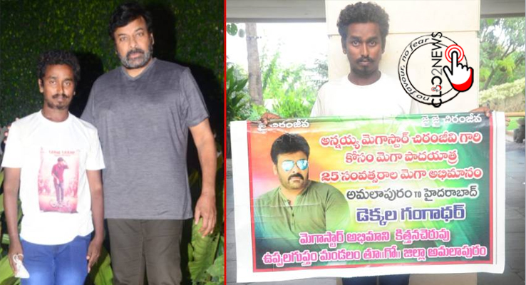 726 కి.మీ. నడిచి చిరంజీవిని కలిసిన అభిమాని