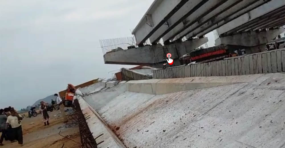 అన‌కాప‌ల్లి (CLiC2NEWS): విశాఖ జిల్లాలోని అన‌కాప‌ల్లి వ‌ద్ద జాతీయ ర‌హ‌దారిపై ఘోర ప్ర‌మాదం జ‌రిగింది. అనకాప‌ల్లి నుంచి ఆనంద‌పురం వ‌ర‌కు జాతీయ ర‌హ‌దారి విస్త‌ర‌ణ ప‌నుల్లో భాగంగా అన‌కాప‌ల్లి శంక‌ర్‌మ‌ఠ్ కూడ‌లి వ‌ద‌ద్ ఇంట‌ర్ చేంజ్ ర‌హ‌దారి నిర్మిస్తున్నారు. ఇందు బాగంగా నిర్మాణంలో వంతెన సైడ్ పిల్ల‌ర్ కూలి ర‌హ‌దారిపై వెళ్తున్న వాహ‌నాల‌పై ప‌డింది.