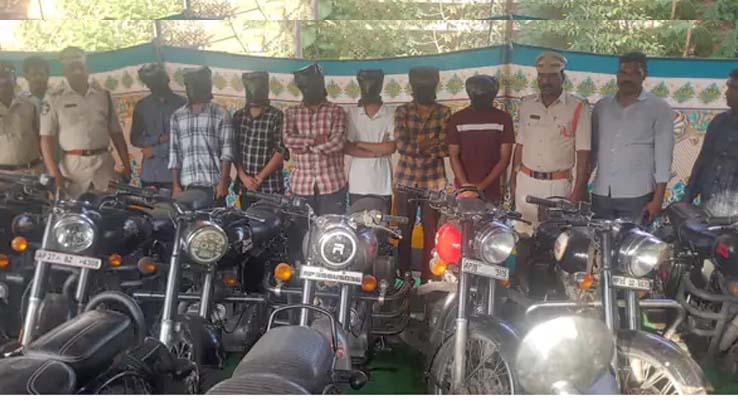 బాపట్ల (CLiC2NEWS): యూట్యూబ్ చూసి దొంగతనాలకు పాల్పడుతున్న ఏడుగురు ఇంజినీరింగ్ విద్యార్థులను పోలీసులు అరెస్టు చేశారు. ఈ ఘటన బాపట్ల జిల్లా అద్దంకిలో చోటుచేసుకుంది. యూట్యూబ్ చూసి బుల్లెట్ బైక్ల తాళాలు ఎలా తీయాలో నేర్చుకుని దొంగతనాలకు పాల్పడుతున్నారు. అద్దంకిలో 9 కేసులు, నరసరావుపేటలో 1, మద్దిపాడులో 1, చిలకలూరి పేటలో 2, జె. పొగులూరులో 2 కేసులు నమోదయ్యాయి. ఇవన్నీ కూడా బుల్లెట్ వాహనాలే చోరీకి గురవడంతో పోలీసులు తీవ్రంగా పరిగణలోకి తీసుకున్నారు. ఈ ఏడాది మార్చి నుండి ఇప్పటి వరకు 16 బుల్లెట్ బైక్లు , ఒక స్కూటీని అపహరించినట్లు పోలీసుల దర్యాప్తులో తేలింది. వీటి విలువ సుమారు రూ.25 లక్షలకు పైగా ఉన్నట్లు సమాచారం. ఆ బైక్లను విక్రయించేందుకు సిద్దంగా ఉన్న సమయంలో పోలీసులు గుర్తించి స్వాధీనం చేసుకున్నారు.