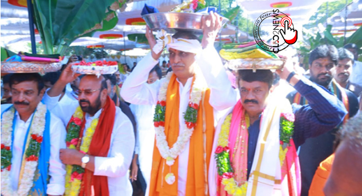 కొముర‌వెల్లి (CLiC2NEWS): కొమ‌ర‌వెల్లి మ‌ల్ల‌న్న క‌ల్యాణ మ‌హోత్స‌వం అత్యంత ఘ‌నంగా నిర్వ‌హించారు. మ‌ల్ల‌న్న కాల్యాణం క‌న్నులారా వీక్షించేందుకు భ‌క్తులు విశేషంగా త‌ర‌లివ‌చ్చారు. ఈ క‌ల్యాణోత్స‌వంలో రాష్ట్ర మంత్రులు హ‌రీశ్ రావు, త‌ల‌సాని శ్రీ‌నివాస్ యాద‌వ్‌, మ‌ల్లారెడ్డి, ఎంపి కొత్త ప్ర‌భాక‌ర్ రెడ్డి పాల్గొన్నారు. తెలంగాణ ప్ర‌భుత్వం త‌ర‌పున మ‌ల్లన్న స్వామికి రూ. కోటి విలువ గ‌ల బంగారు కిరీటాన్ని, ప‌ట్టు వ‌స్త్రాల‌ను మంత్రి హ‌రీశ్‌రావు స‌మ‌ర్పించారు.