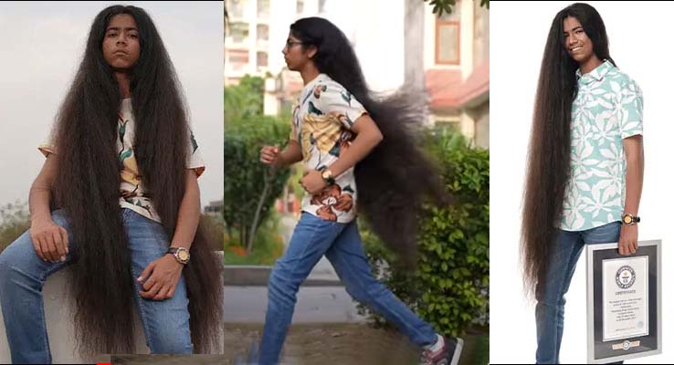 పొడవైన జుట్టుతో కుర్రాడి గిన్నిస్ రికార్డ్..