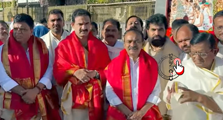 తిరుమల (CLiC2NEWS): ఈ రోజు (ఆదివారం) తిరుమల శ్రీవారిని తెలలంగాణకు చెందిన పలువురు నాయకులు దర్శించుకున్నారు. వారిలో తెలంగాణ డిప్యూటీ స్పీకర్ జాతోట్ రామచందర్ నాయక్, ఎంపీలు ఈటల రాజేందర్, బలరాం నాయక్ తదితరులు ఉన్నారు.