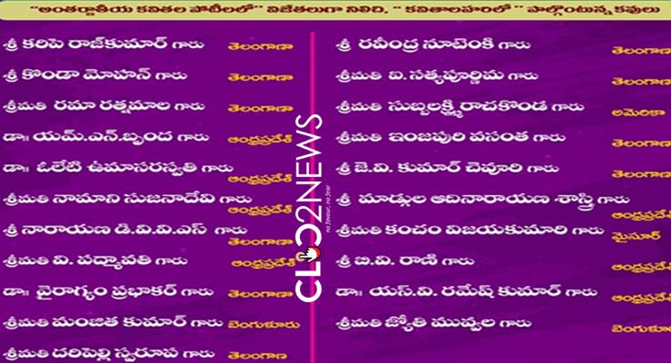 ఈ పోటీలో తెలంగాణలో వరంగల్లు జిల్లా వలిమిడి గ్రామం లో పుట్టి హైదరాబాద్ లోని జలమండలిలో డిస్ట్రిక్ట్ ఫారెస్ట్ ఆఫీసర్ గా డిపుటేషన్ పై పని చేయుచున్న కవి, రచయిత కొండా మోహన్ ఎంపికయ్యారు.