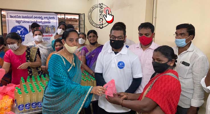 మండపేట (CLiC2NEWS): మండపేట పట్టణంలో విజయం చారిటబుల్ ట్రస్టు ఆధ్వర్యంలో సంస్థ సభ్యులు చేస్తున్న సేవలు అభినందనీయమని చైర్ పర్సన్ పతివాడ దుర్గారాణి పేర్కొన్నారు. మున్సిపాలిటీలో పనిచేస్తున్న పారిశుధ్య కార్మికులకు సంస్థ సభ్యులు శానిటేషన్ సామాగ్రి సమకూర్చారు. శుక్రవారం కార్యాలయంలో చైర్ పర్సన్ రాణి, కమిషనర్ త్రిపర్ణ రామ్ కుమార్ చేతులమీదుగా వాటిని కార్మికులకు పంచి పెట్టారు. ఒక్కొక్కరికీ రెండు మాస్కులు, అర లీటర్ కొబ్బరినూనె, రెండేసి సేవలాన్ సబ్బులు చొప్పున వారికి అందజేశారు. ఈ సందర్భంగా చైర్ పర్సన్ రాణి మాట్లాడుతూ విజయం స్వచ్ఛంద సంస్థ సేవలు మరింత విస్తృతం చేయాలని సభ్యులను అభినందించారు. మున్సిపాలిటీలో పనిచేసే మొత్తం 158 మందికి సామాగ్రి ఏర్పాటు చేసినట్లు ట్రస్టు సభ్యులు బొమ్మకంటి విజయ్ మోహన్ చెప్పారు. 35 వేలు విలువ గల కిట్లు అందజేసినట్లు తెలిపారు. ఈ కార్యక్రమంలో సిబ్బంది ముత్యాల సత్తిరాజు, సంస్థ అధ్యక్షుడు రెడ్డి ఆశిస్, కె కాళీ కృష్ణ, ఎన్ సాయి శ్రీనివాస్, బి హరికృష్ణ, వి మణిదీప్ రెడ్డి, బి అయ్యప్ప, షేక్ సూరజ్, పి సాయి కిరణ్ తదితరులు పాల్గొన్నారు.