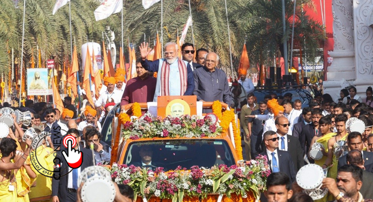 सोमनाथ स्वाभिमान पर्व पर रोड शो के दौरान जगह-जगह शिवभक्तों का जोश और उल्लास आनंद से भर देने वाला था। इसमें नारीशक्ति ने जिस तरह से बढ़-चढ़कर भागादारी की, उसने पूरे वातावरण को और अधिक गरिमामयी बना दिया। भारतीय संस्कृति और स्वाभिमान के लिए उनका समर्पण भाव देखकर अभिभूत हूं। pic.twitter.com/fns5jtCKkU