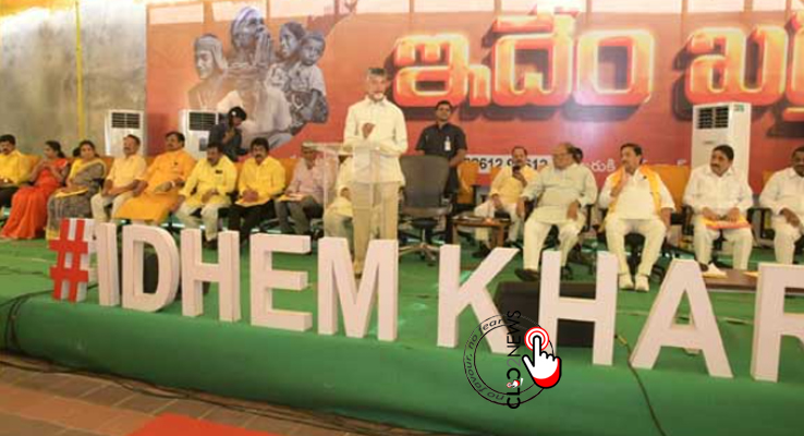 మంగళగిరి (CLiC2NEWS): రాబోయే ఎన్నికల్లో తెలుగుదేశం పార్టీ గెలవకపోతే.. ఆంధ్రప్రదేశ్ రాష్ట్రాన్ని ఎవరూ కాపాడలేరు అని టిడిపి అధినేత చంద్రబాబు నాయుడు అన్నారు. మంగళగిరిలోని పార్టీ కార్యాలయంలో టిడిపి వస్తృత స్థాయి సమావేశం నిర్వహించారు. కార్యక్రమాన్ని ‘ఇదేం ఖర్మ పేరిట’ చంద్రబాబు ప్రారంభించారు. ఈ సందర్భంగా ఆయన మాట్లాడుతూ.. రాష్ట్రంలో గత మూడున్నరేళ్ల కాలంలో ఎంతో విధ్వంసం జరిగిందని.. ప్రజాస్వామ్యానికి వ్యతిరేకంగా ఎన్నో దారుణాలు జరిగాయన్నారు. ఇంత నీచమైన ప్రభుత్వాన్ని ఎన్నడూ చూడలేదన్నారు. కేవలం అధికారంలో ఉన్నపుడే కాకుండా.. ప్రతిపక్షంలో ఉన్నాకూడా బాధ్యతగా ఉన్నామని ఆయన తెలిపారు.