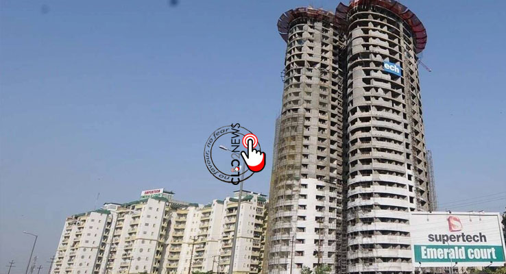 నొయిడా (CLiC2NEWS): నొయిడాలో సూపర్ టెక్ సంస్థ కుతుబ్మినార్ కంటే ఎత్తుగా 40 అంతస్తుల జంట భవనాలను నిర్మించింది. ఈ ట్విన్ టవర్స్ నిబంధనలు ఉల్లఘించి అక్రమంగా నిర్మించారని సమీపంలోని సూపర్టెక్ ఎమరాల్డ్ కోర్డు సొసైటివాళ్లు 2012లో కోర్టును ఆశ్రయించారు. అలహాబాద్ హైకోర్టు నిర్మాణ అనుమతుల్లో అవకతవకలు జరిగినట్లు తేల్చి 2014లో భవనాల్ని కూల్చివేయాలని ఆదేశించింది. భవన యాజమాన్యం సుప్రీంకోర్టును ఆశ్రయించారు. సమారు 9 సంవత్సరాల న్యాయపోరాటం అనంతరం గతేడాది అత్యున్నత న్యాయస్థానం అలహాబాద్ హైకోర్టు ఇచ్చిన తీర్పును సమర్థించింది. భవనాల్ని కూల్చివేయాలని, దానికి మూడు నెలల గడువు ఇచ్చింది.