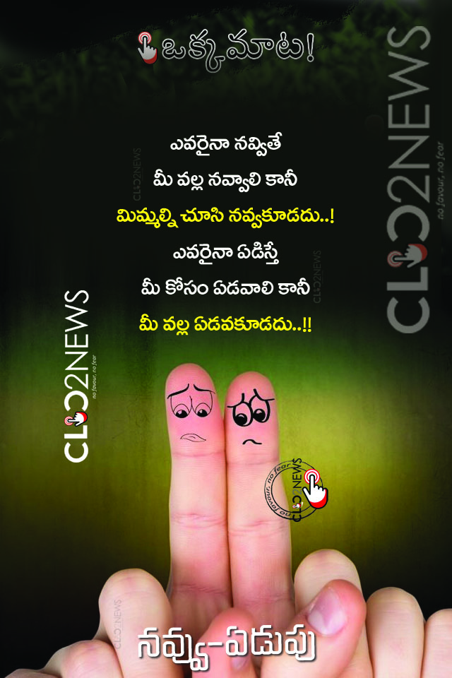 OkkaMata: నవ్వు – ఏడుపు! featuredఒక్కమాట On Jul 4, 2022 0 మరిన్ని `ఒక్కమాట`ల కోసం ఇక్కడ క్లిక్ చేయండి:OkkaMata:వాడుకోవడం! 0 Share FacebookGoogle+TwitterWhatsAppPinterestTelegramEmail