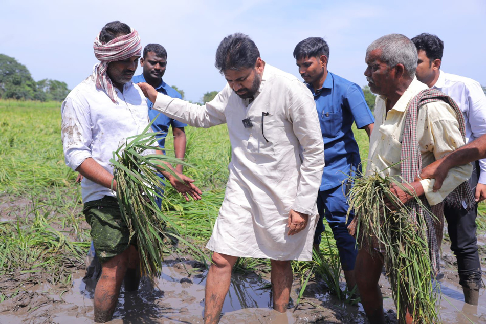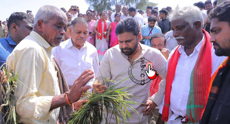 కోడూరులో నీట మునిగిన పొలాలను పరిశీలించిన పవన్
