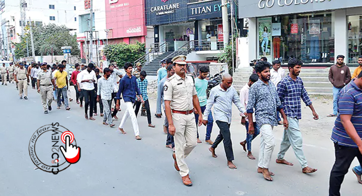 వందమందికిపైగా రౌడీషీటర్లను రోడ్డుపై నడిపించిన పోలీసులు