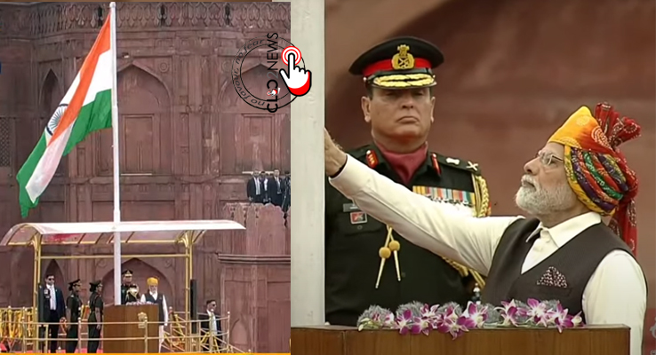 ఢిల్లీ (CLiC2NEWS): దేశ రాజ‌ధాని ఢిల్లీలోని ఎర్ర‌కోట‌పై ప్ర‌ధాన‌మంత్రి మోడీ త్రివ‌ర్ణ ప‌తాకాన్ని ఆవిష్క‌రించారు. భార‌తీయుల‌కు ఆయ‌న స్వాతంత్య్ర దినోత్స‌వ‌పు శుభాకాంక్ష‌లు తెలిపారు. ముందుగా రాజ్‌ఘాట్‌లోని మ‌హాత్మాగాంధీ స‌మాధి వ‌ద్ద నివాళుల‌ర్పించి.. అనంత‌రం ఎర్ర‌కోట‌పై జాతీయ జెండాను ఎగుర‌వేశారు.