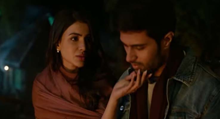 సమంత జన్మదినం సందర్భంగా విజయ్ దేవరకొండ సర్ప్రైజ్ ఇచ్చాడు. శివ నిర్వాణ దర్శకత్వంలో వీరిద్దరూ కలిసి నటిస్తున్న విషయం తెలిసినదే. కశ్మీర్లో ఈ సినిమా షూటింగ్ ఇటీవలే ప్రారంభమైంది. సమంత పుట్టినరోజును పురస్కరించుకొని చిత్ర దర్శకుడితో సినిమా స్క్రిప్టులో లేని ఓ ఫేక్ సీన్ రాయించాడు. ఈ విషయం తెలియని సమంత సన్నివేశంలో లీనమై, భావోద్వేగానికి గురైంది. “ఎందుకిలా ఉన్నావ్? వెళ్లి పోతున్నావా? పది రోజుల్లో వచ్చేస్తా. నువ్వు మా ఊరొచ్చి మా తల్లి దండ్రులతో మాట్లాడటం కాదు.. నేనే మీ వాళ్లతో మాట్లాడి మన పెళ్లికి ఒప్పిస్తా..” అంటూ సమంత ఫీల్ అవుతుండగా విజయ్ హ్యాపీ బర్తడే అని ఆమెను ఆశ్చర్యపరిచాడు. తర్వాత దర్శకుడు, సాంకేతిక నిపుణులు కేకును తీసుకొచ్చి, సమంతతో కట్ చేయించారు.