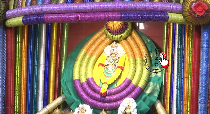శ్రీకాకుళం (CLiC2NEWS): శ్రావణమాసం మహిళలకు ఎంతో ఇష్టమైన మాసం . ఈ మాసంలో ప్రతి శుక్రవారం మహిళలు ఎంతో శ్రద్ధగా అమ్మవారికి పూజలు చేస్తారు. అందులోనూ పౌర్ణమికి ముందు వచ్చే శ్రావణ శుక్రవారం రోజున వరలక్ష్మీ వ్రతం ఆచరిస్తారు. ఈ మాసంలో ఏ ఇంట చూసినా పండుగ వాతావరణం కనిపిస్తుంటుంది. ఆలయాలల్లో సైతం అలంకరణలు చేస్తారు. అమ్మవారి ఆలయాలైతే వివిధ రకాలుగా అలంకరిస్తారు. రూపాయల నోట్లతో, కూరగాయలతో, గాజులతో.. వివిధ రకాల వస్తువులతో ప్రత్యేకంగా అలంకరిస్తారు. తాజాగా శ్రీకాకుళం జిల్లా బలగలోని శ్రీ బాల త్రిపుర సుందరీ దేవీ అమ్మవారిని గాజులతో అలంకరించారు. సుమారు 5.20 లక్షల గాజులను ఈ అలంకరణకు ఉపయోగించారు. అమ్మవారిని దర్శించుకునేందుకు భారీగా భక్తులు తరలివచ్చారు. ఆలయంలో మహిళలు వరలక్ష్మీ వ్రతాలు ఆచరించారు.