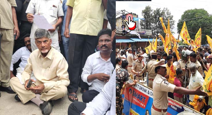 కుప్పంలో టిడిపి అధినేత చంద్రబాబు రోడ్డుపై బైఠాయింపు