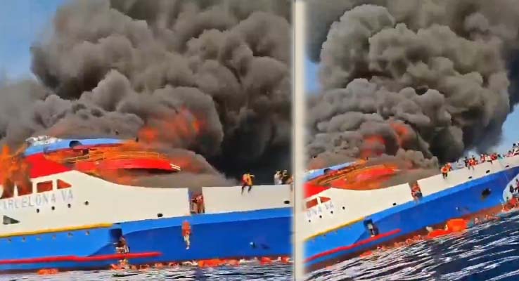 నౌకలో మంటలు.. సముద్రంలోకి దూకిన ప్రయాణికులు