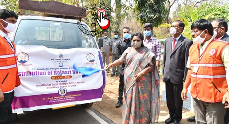 హైదరాబాద్ (CLiC2NEWS): రాష్ట్ర జనాభాలో 10 శాతం పైగా ఉన్న గిరిజనుల అభివృద్ధికి సమగ్రమైన దృక్పథంతో ముందుకు పోవాలని గవర్నర్ డాక్టర్ తమిళిసై సౌందరరాజన్ పిలుపునిచ్చారు. పి.వి నరసింహారావు తెలంగాణ స్టేట్ వెటర్నరీ యూనివర్సిటీ క్యాంపస్ లో ఈరోజు జరిగిన ఒక ప్రత్యేకమైన కార్యక్రమంలో గవర్నర్ పాల్గొని ఆదిమ జాతి గిరిజన తెగలకు చెందిన కొంతమందికి రాజశ్రీ రకం నాటు కోళ్లను, కిట్లను పంపిణీ చేశారు.