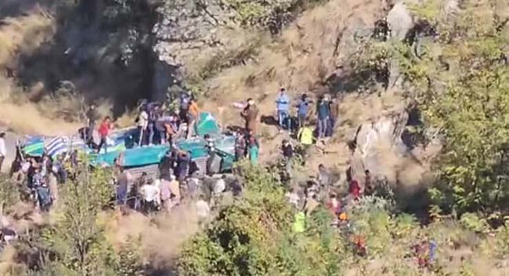 శ్రీనగర్ (CLiC2NEWS): జమ్మూకశ్మీర్లో ప్రమాదవశాత్తూ ఓ బస్సు లోయలో పడిపోయింది. ఈ ప్రమాదంలో 36 మంది మృతి చెందారు మరో 19 మంది గాయపడినట్లు సమాచారం. వీరిలో కూడా ఆరుగురి పరిస్థితి విషమంగా ఉన్నట్లు తెలుస్తోంది. జమ్మూలోని డోడా జిల్లాలో జాతీయ రాహదారిపై ఈ ఘోర ప్రమాదం చోటుచోసుకుంది. దాదాపు 55 మంది ప్రయాణికులతో కిష్త్వాఢ్ నుండి జమ్మూకి వెళ్తున్న బస్సు ప్రమాదవశాత్తూ 300 అడుగుల లోయలో పడిపోయింది. ఘటనా స్థలంలో అధికారులు సహాయక చర్యలు చేపట్టారు.