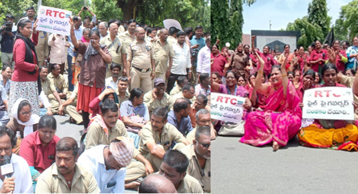 హైదరాబాద్ (CLiC2NEWS): ఆర్టిసి బిల్లును గవర్నర్ ఆమోదించాలని ఆర్టిసి కార్మికులు రాజ్భవన్ వద్ద శనివారం ఆందోళన చేపట్టారు. ఈ నేపథ్యంలో ఈరోజు ఉదయం 6 గంటల నుండి 8 గంటల వరకు బస్సులు బంద్ చేసిన విషయం తెలిసిందే. బస్సు డిపోల వద్ద 2 గంటల పాటు బంద్ పాటించిన ఆర్టిసి ఉద్యోగులు తర్వాత నెక్లెస్ రోడ్డులోని అంబేద్కర్ విగ్రహం, రాజ్భవన్ వద్దకు చేరుకున్నారు. ఈ క్రమంలో రాజ్భవన్ వద్ద భారీగా పోలీసు బలగాలు మోహరించాయి. ఆర్టిసి యూనియన్ నాయకులతో గవర్నర్ పుదుచ్చేరి నుండి వీడియో కాన్ఫరెన్స్లో మాట్లాడారు. 10 మంది సభ్యుల బృందం గవర్నర్తో గంటపాటు చర్చించినట్లు సమాచారం. అనంతరం గవర్నర్ సానుకూలంగా స్పందించారని యూనియన్ సంఘం నేత థామస్ రెడ్డి తెలిపారు.