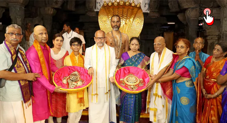 తిరుమల (CLiC2NEWS): కలియుగ ప్రత్యక్ష దైవం తిరుమల వేంకటేశ్వర స్వామికి ఓ సంస్థ భారీ కానుకలు అందజేసింది. మంగళవారం నాడు శ్రీవారికి చెన్నై(Chennai) కి చెందిన సుదర్శన్ ఎంటర్ ప్రైజస్ సంస్థ బంగారు కానుకలను అందజేసింది.