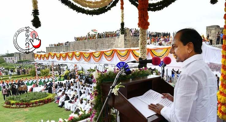 హైద‌రాబాద్ (CLiC2NEWS) : రాష్ట్రంలో 75వ స్వాతంత్ర్య దినోత్స‌వ వేడుక‌లు ఘ‌నంగా జ‌రిగాయి. తెలంగాణ ముఖ్య‌మంత్రి క‌ల్వకుంట్ల చంద్ర‌శేఖ‌ర‌రావు గోల్కొండ కోట‌లోని రాణిమ‌హ‌ల్ ప్రాంగ‌ణంలో జాతీయ జెండాను ఎగుర‌వేశారు. త‌ద‌నంత‌రం సాయుధ ద‌ళాల గౌర‌వ‌వంద‌నం స్వీక‌రించారు. ఈసంద‌ర్భంగా సిఎం కెసిఆర్ ప్ర‌జ‌లనుద్దేశించి మాట్లాడుతూ.. తెలంగాణ సాధించుకున్న‌ప్ప‌టి నుంచి ప్ర‌జా సమ‌స్య‌ల ప‌రిష్కార‌మే ల‌క్ష్యంగా ప్ర‌భుత్వం ప‌నిచేస్తుంద‌ని పేర్కొన్నారు. దేశంలో తెలంగాణ నంబ‌ర్‌ వ‌న్‌గా, ఆద‌ర్శరాష్ట్రంగా తీర్చిదిద్దామ‌ని ఆయ‌న అన్నారు.
