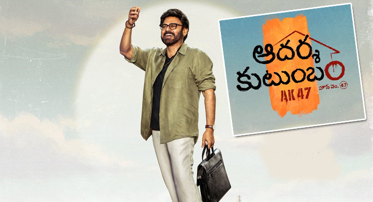 హైదరాబాద్ (): విక్టరీ వెంకటేశ్ ఎంతో కాలంగా ఎదురు చూస్తున్న అప్డేట్ వచ్చేసింది. మాటల మాంత్రికుడు త్రివిక్రమ్ శ్రీనివాస్ దర్శకత్వంలో వెంకటేశ్ కథానాయకుడుగా రూపొందుతున్న సినిమాకు ఎట్టకేలకు టైటిల్ ఖరారైంది. ఈ మేరకు మేకర్స్ టైటిల్ను ప్రకటించారు. హారిక అండ్ హాసిని క్రియేషన్స్ పతాకంపై రూపొందుతున్న ఈ సినిమాకి `ఆదర్శకుటుంబం` అనే టైటిల్ను పెట్టారు. ఈ సినిమాకి `హౌస్ నం. 47 (ఎకె 47)` అనే ట్యాగ్లైన్ ను కూడా పెట్టారు.