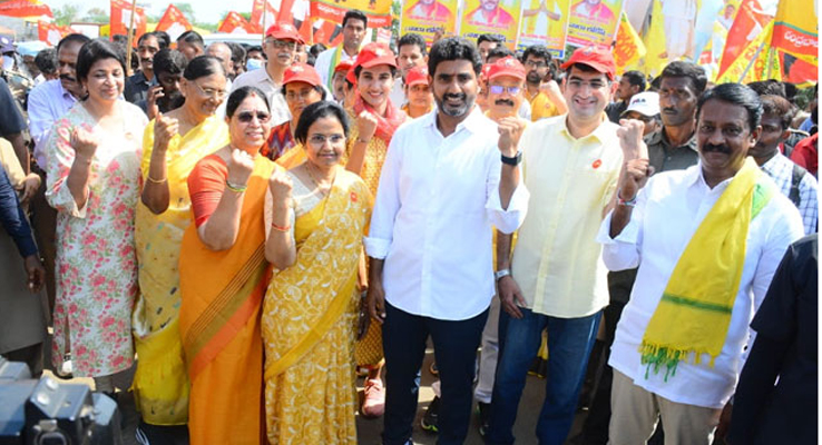 పాద‌యాత్ర‌లో నారా, నంద‌మూరి కుటుంస‌భ్యులు..